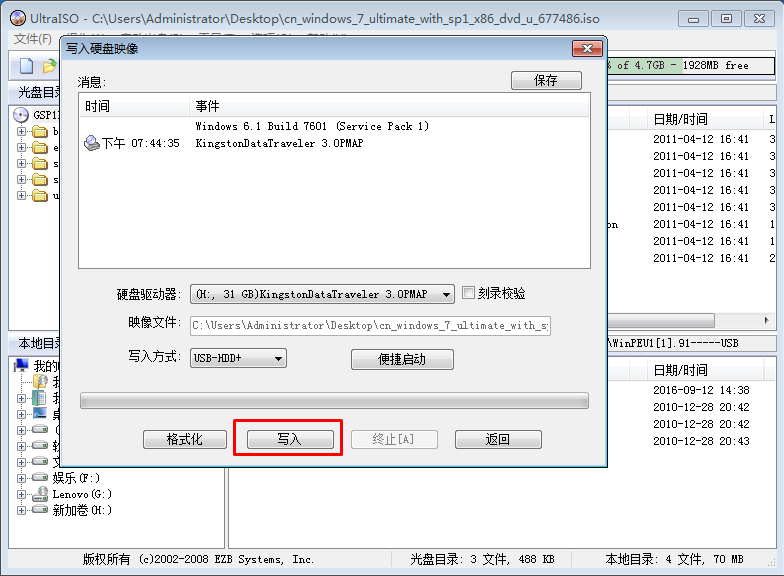 4、直接点击“写入”,开始执行写入操作,等待操作完成就行了。